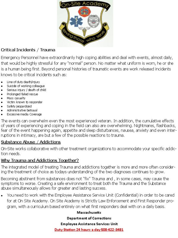 EMPLOYEE ASSISTANCE SERVICES UNIT CENTRAL REGION 21 Needham Street, Norfolk, MA 02056 FAX: (508) 422-3560 DENISE VEGA: DIRECTOR Cell: (508) 889-4470 Denise.Vega@doc.state.ma.us Bonnie Mullaney: Program Coordinator I Cell: (774) 737-6628 Bonnie.Mullaney@doc.state.ma.us Daniel Church: Peer Counselor Cell: (774) 573-5177 Daniel.C.Church@doc.state.ma.us Christopher Cali: Peer Counselor Cell: (508) 889-4158 Christopher.Cali@doc.state.ma.us James Munns: Peer Counselor Cell: (774)-737-6632 James.Munns@doc.state.ma.us NORTHERN REGION P.O. Box 301 Harvard Road, Bldg #19, Shirley, MA 01464 FAX: (978) 514-6776 Nissa Thornton: Peer Counselor Cell: (508) 889-1037 Nissa.Thornton@doc.state.ma.us Marley Dixon: Peer Counselor Cell: (508) 509-9257 Marley.Dixon@doc.state.ma.us Kevin McNamara: Peer Counselor Cell: (508) 244-1177 Kevin.McNamara@doc.state.ma.us Patrick Mercier: Peer Counselor Cell: (508) 889-4448 Patrick.H.Mercier@doc.state.ma.us SOUTHERN REGION Conant Community Center 5 Wally Kreuger Way Suite 4, Bridgewater, MA 02324 Michael Jones: Peer Counselor Cell: (508) 244-1178 Michael.J.Jones@doc.state.ma.us Thomas Higginbotham: Peer Counselor Cell: (781) 403-0401 Thomas.Higginbotham@doc.state.ma.us Matthew Talieri: Peer Counselor Cell: (774) 573-0212 Matthew.Talieri@doc.state.ma.us